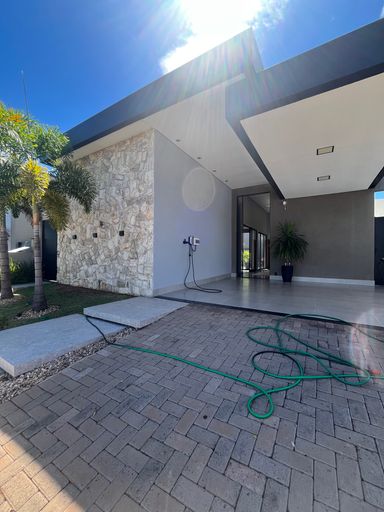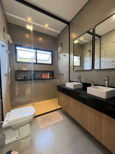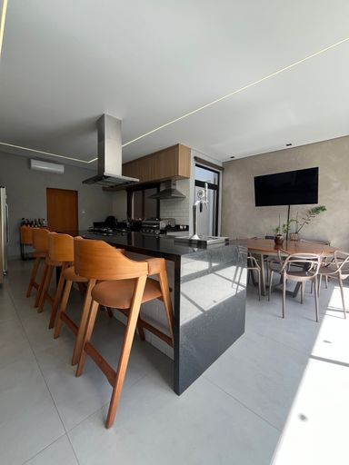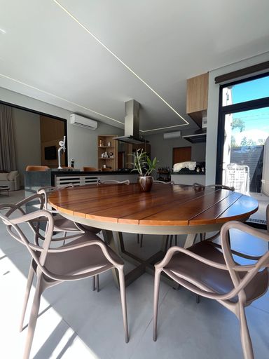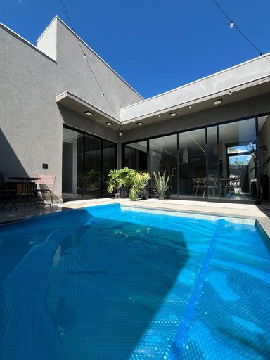 Casa térrea 01 suite master e 02 dorms com semi suite todas completas armários e climatizadas sendo 01 master, cozinha integrada com armários e despensa, lavanderia, lavabo, jardim de inverno, piscina, banheiro externo